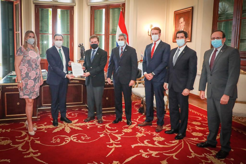 A atualização do projeto foi informada diretamente ao presidente do Paraguai, Mario Abdo Benítez, em encontro realizado nesta segunda-feira (15/11). Na oportunidade, o ministro de Indústria e Comércio, Luis Alberto Castiglioni, entregou a Erasmo Carlos Battistella, CEO do ECB Group, a Resolução nº 723 que declara “de Interesse Institucional o Projeto de Investimento Omega Green”.