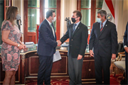 Estiveram presentes também no encontro o Ministro assessor de Assuntos Estratégicos de Presidência, Federico González, o Presidente da Itaipu Paraguai, Manuel Maria Caceres, a Conselheira da Itaipu, Sra. Liz Cramer, e o Superintendente de Relações Institucionais do ECB Group, Ricardo Feistauer.